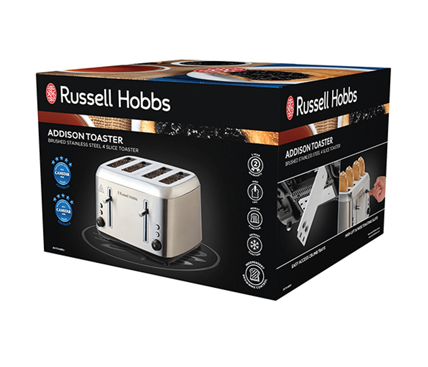 Russel Hobbs Addison 4 Slice Toaster - Brushed Stainless Steel is the ultimate companion for your breakfast routine, ensuring perfectly toasted bread every time. This sleek and stylish toaster not only complements Australian kitchens but also makes busy mornings effortless. With its variable browning control, you can achieve your desired crispness, making it ideal for families and individuals alike. Say goodbye to soggy toast and hello to a game-changer that enhances your daily meal experience.