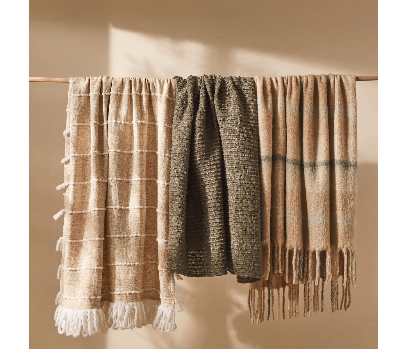 Amalfi Eden Wool Blend Woven Throw Taupe & Brown