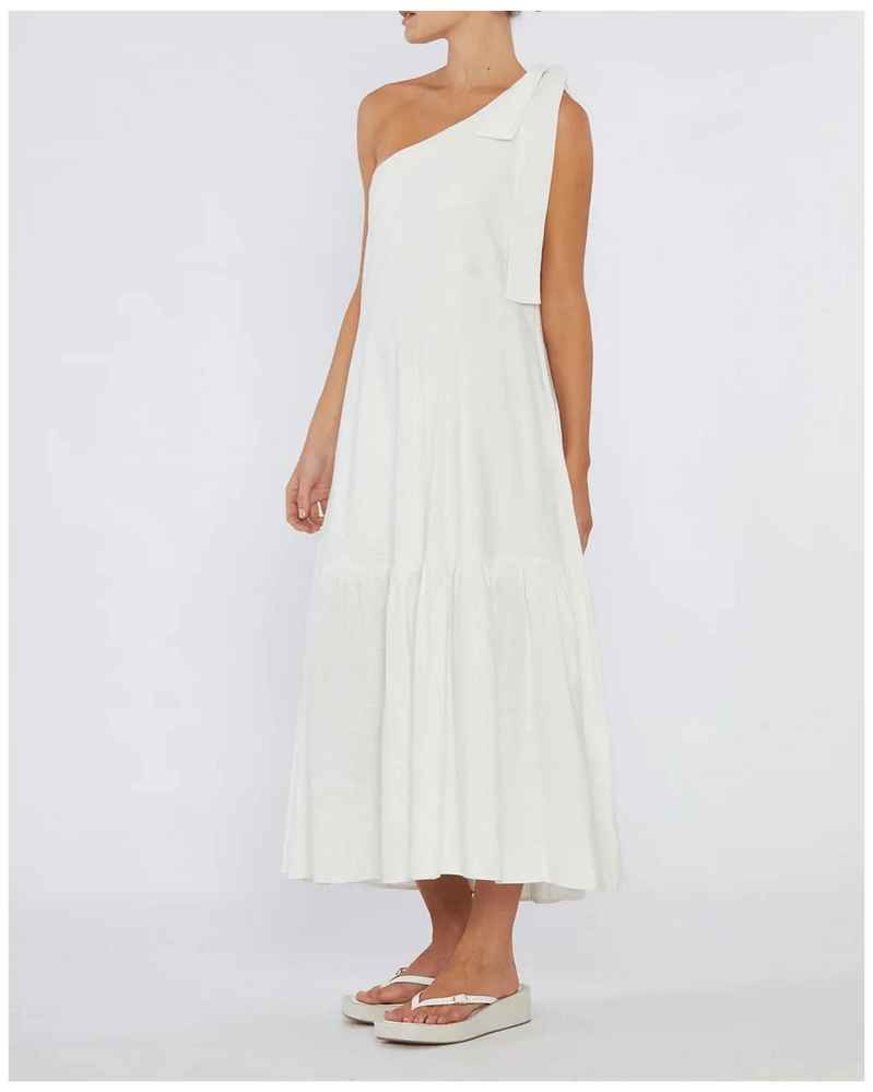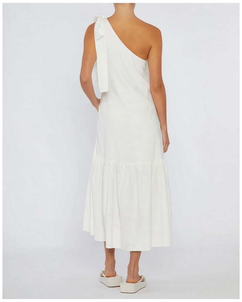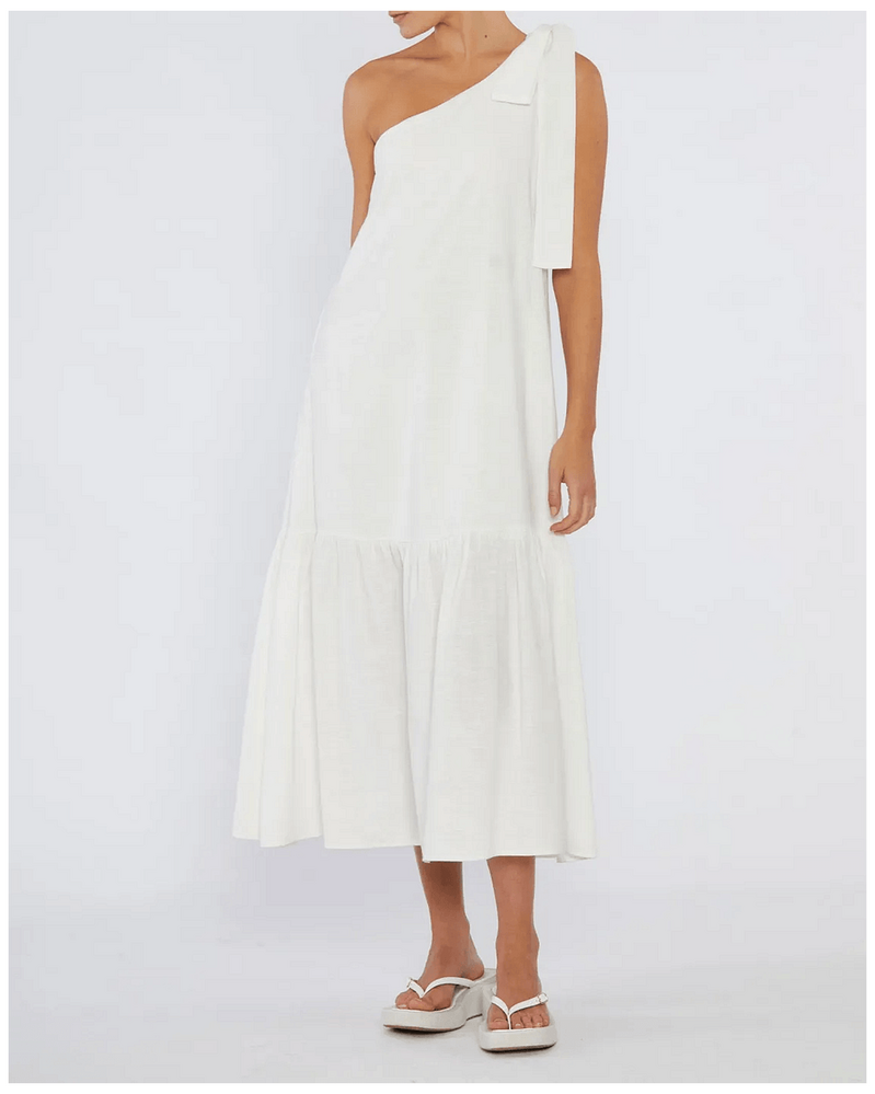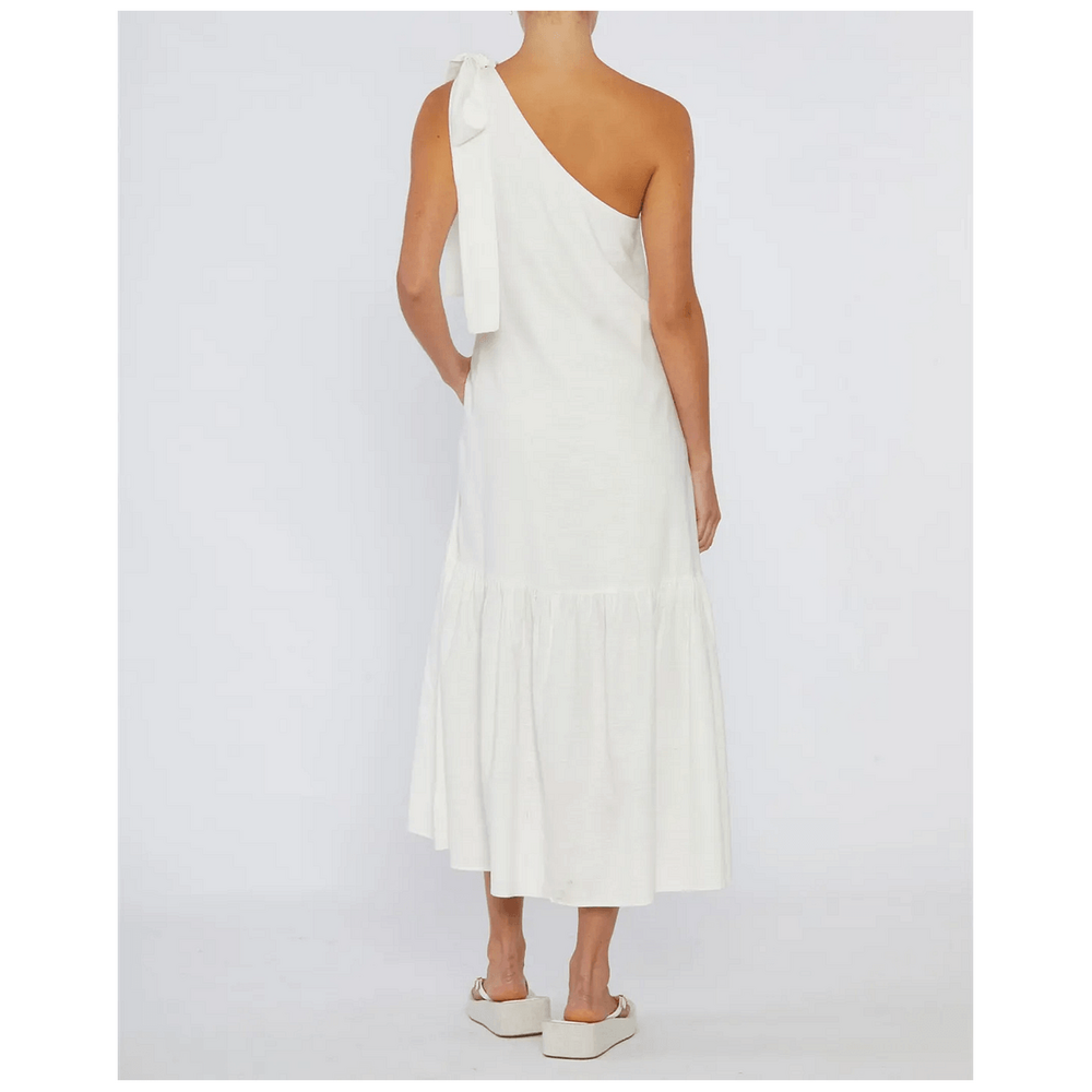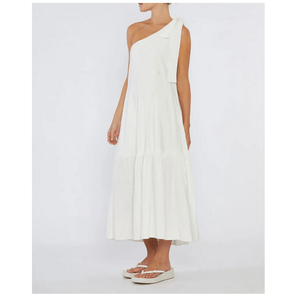 Amelius Aruba Linen One Shoulder Dress - White is the ultimate addition to your summer wardrobe. This elegant dress combines luxurious linen fabric with a stylish one-shoulder design, making it perfect for Australian occasions, whether it's a day at the beach or an evening out with friends. Its timeless white color adds versatility, allowing you to dress it up or down effortlessly. Experience comfort and elegance that enhances your everyday life.