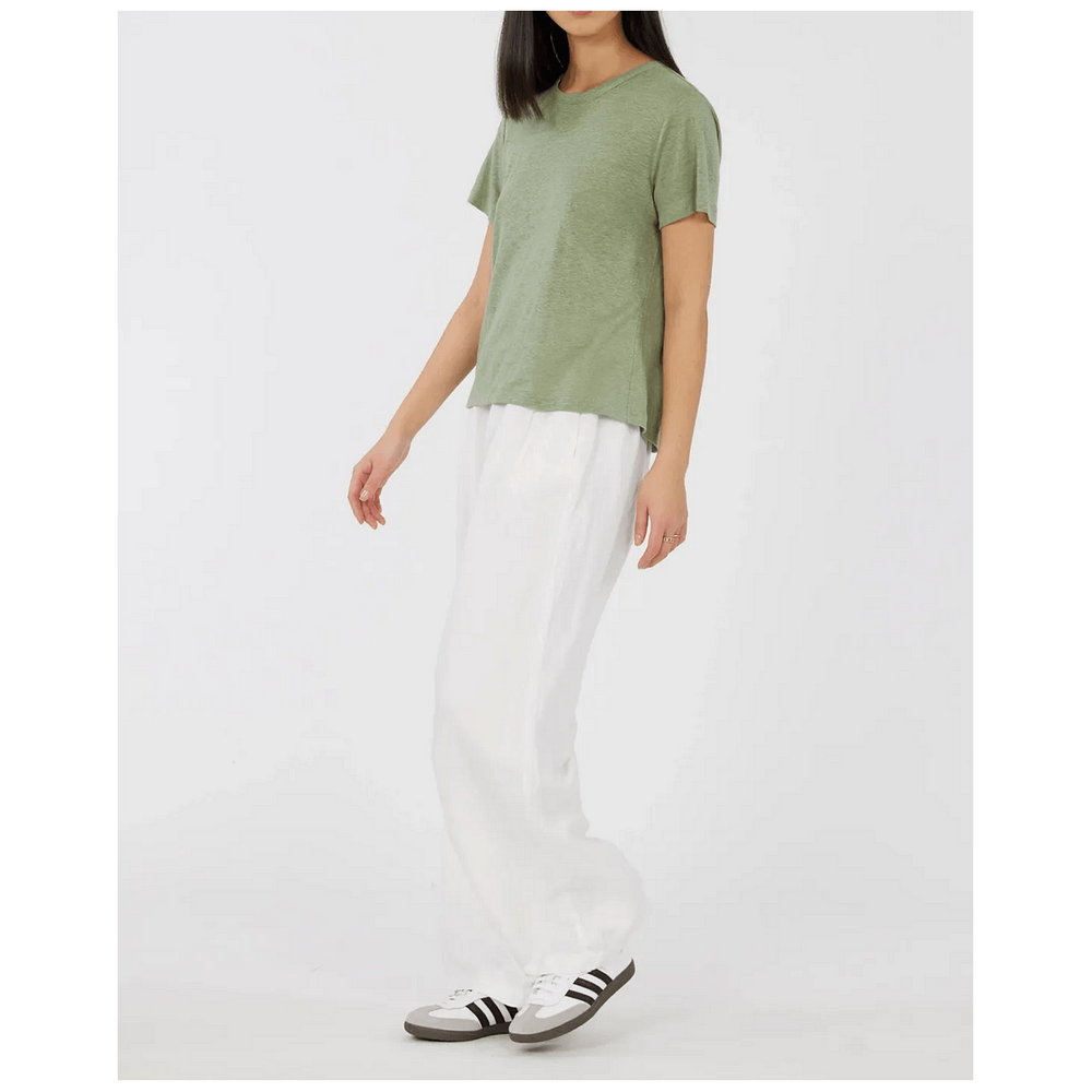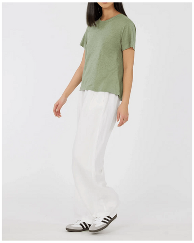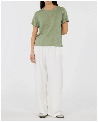 Amelius Coogee Linen Crew Neck Tee - Green Tea is the ultimate addition to any Australian wardrobe. This premium tee combines effortless style with incredible comfort, making it perfect for both casual outings and dressy occasions. With its breathable linen fabric, you’ll stay cool during those warm summer days. Elevate your everyday look and enjoy the luxurious feel that this versatile piece brings, ideal for families and individuals alike across Australia.