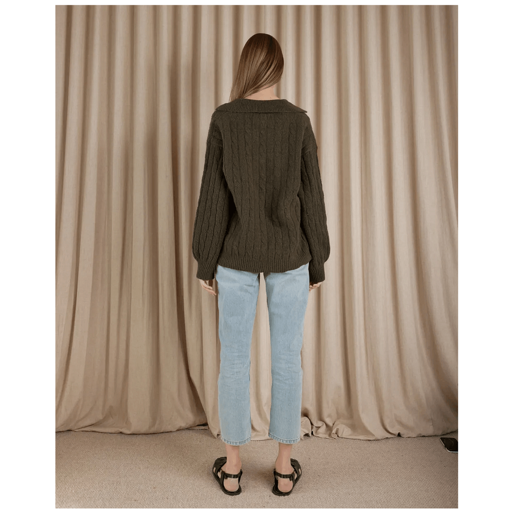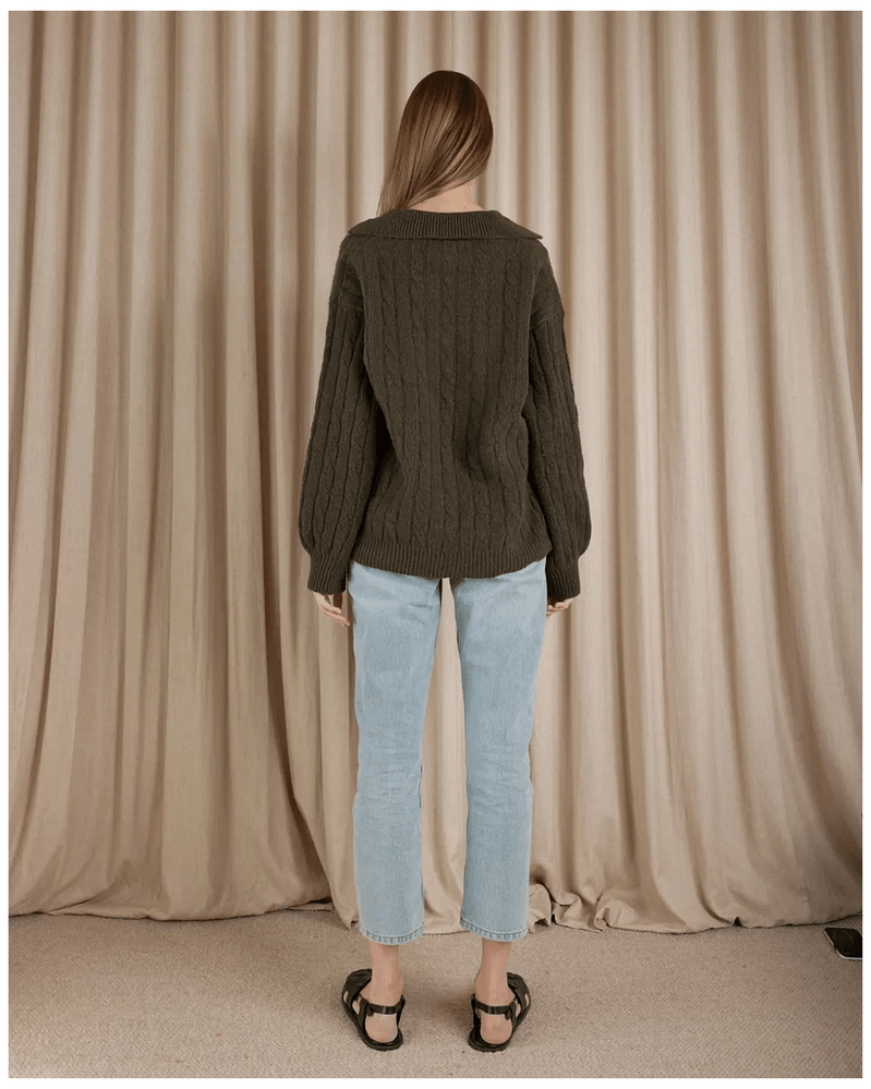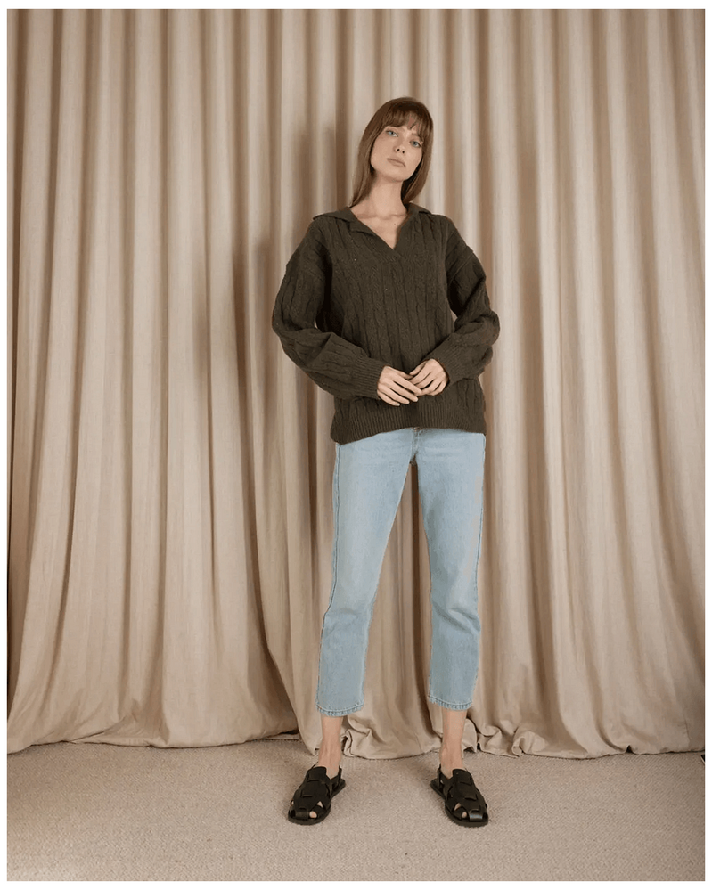 Amelius Etienne Cable Knit Jumper - Khaki is the ultimate addition to your winter wardrobe, designed to offer both style and comfort. This luxurious jumper, with its timeless cable knit design, is perfect for cozy layering during Australia's chilly months. Whether you're heading out for a casual brunch or staying in for a movie night, this versatile piece enhances your outfits effortlessly, making you feel warm and stylish in any setting.