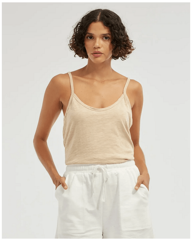 Amelius Lise Raw Hem Singlet - Hummus is the ultimate addition to your wardrobe, designed to elevate your everyday style. Its luxurious soft fabric offers unbeatable comfort, while the modern, relaxed silhouette ensures you look effortlessly chic. Perfect for casual outings or dressier evenings, this versatile piece brings a flattering touch of color to Australian wardrobes, making it a game-changer for busy lifestyles.