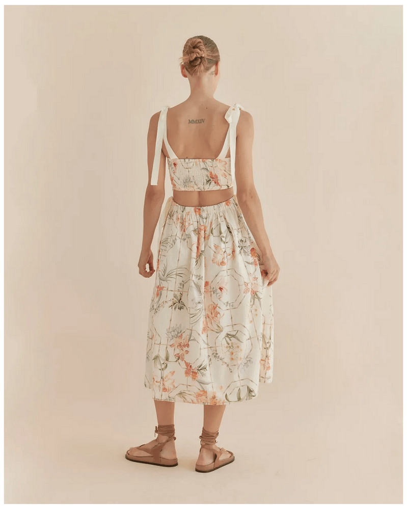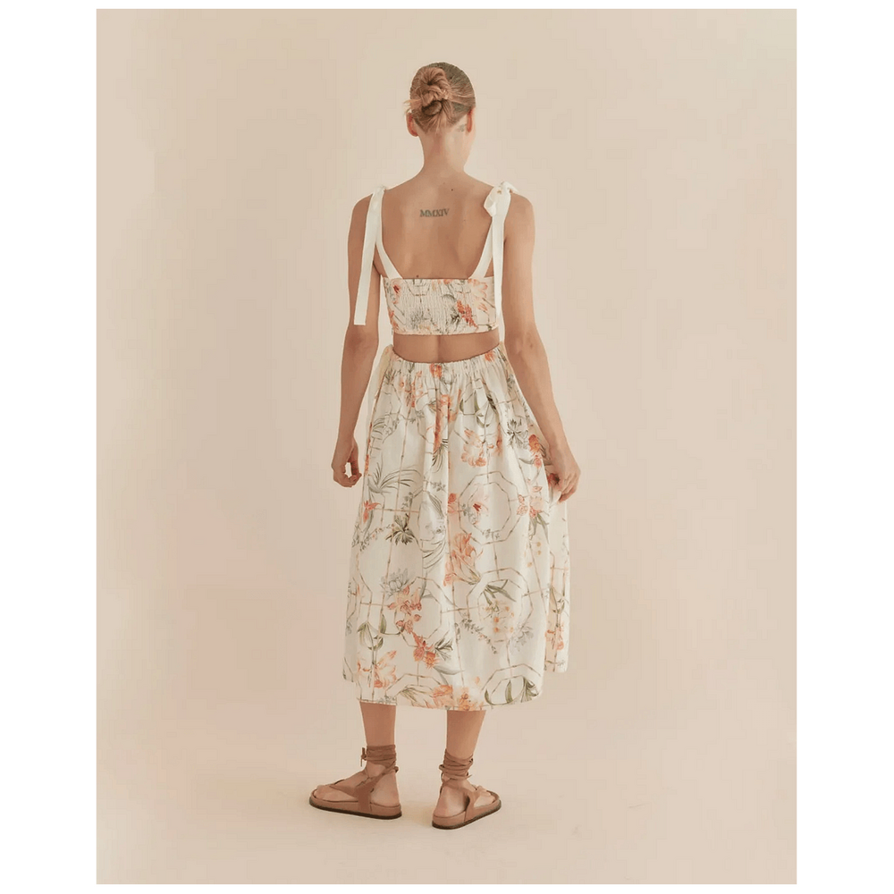 Amelius Anna Panelled Linen Midi Dress - Peony