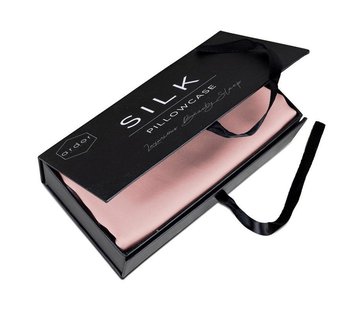Hint soft pink smooth luxury. Ardor Silk Pillowcase pampers hair and skin, reduces frizz, and elevates your beauty sleep effortlessly.