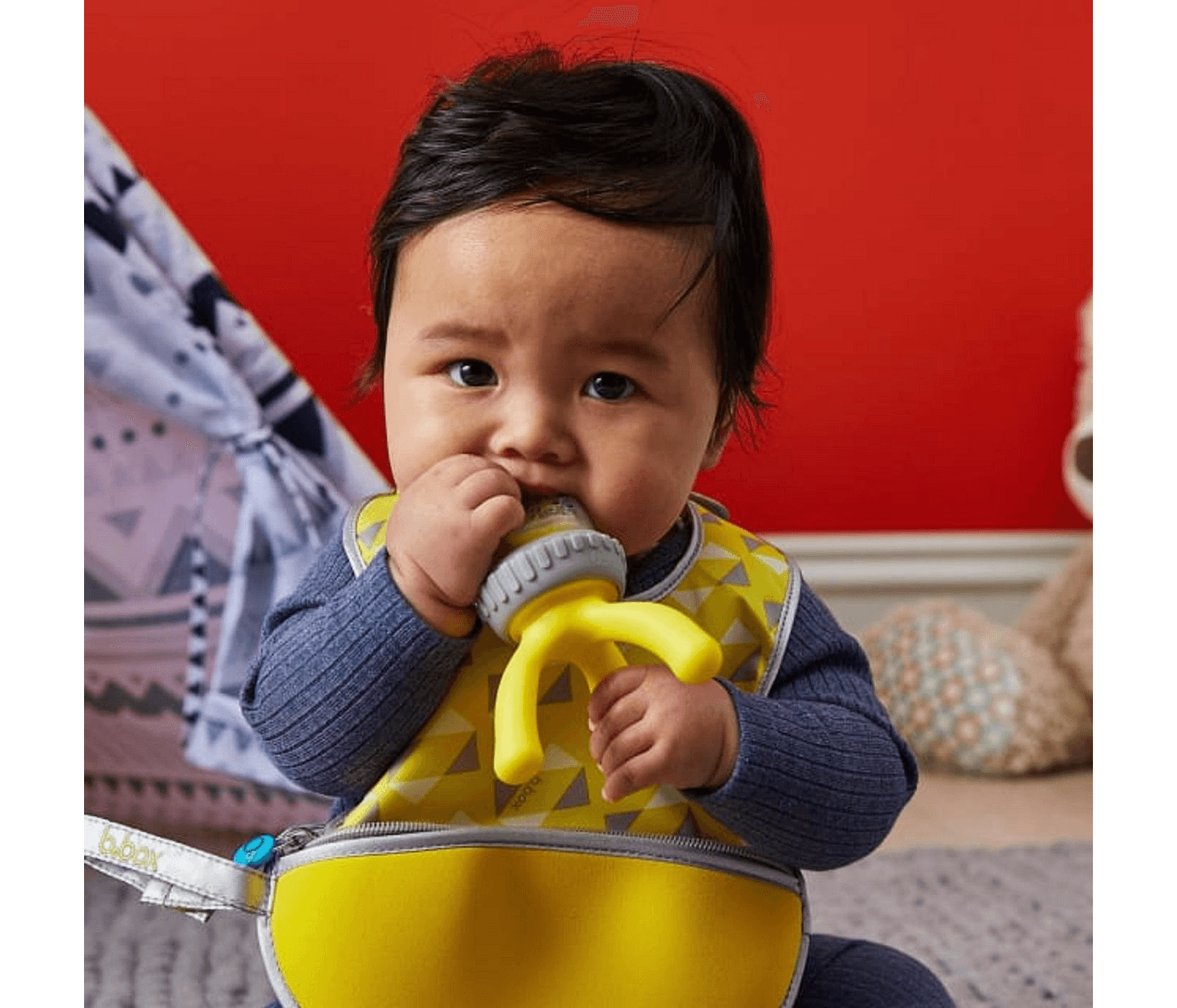 The fresh food feeder by B. BOX offers safe, self-feeding with soft silicone.