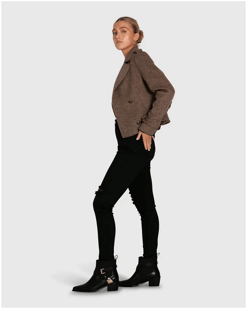 belle & bloom Boss Girl Double Breasted Lined Wool Coat - Chocolate
