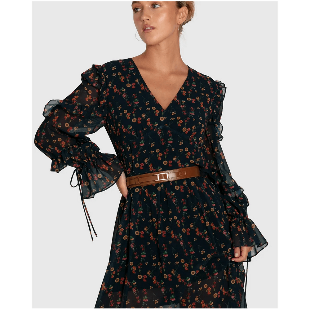 belle & bloom Amour Amour Ruffled Midi Dress