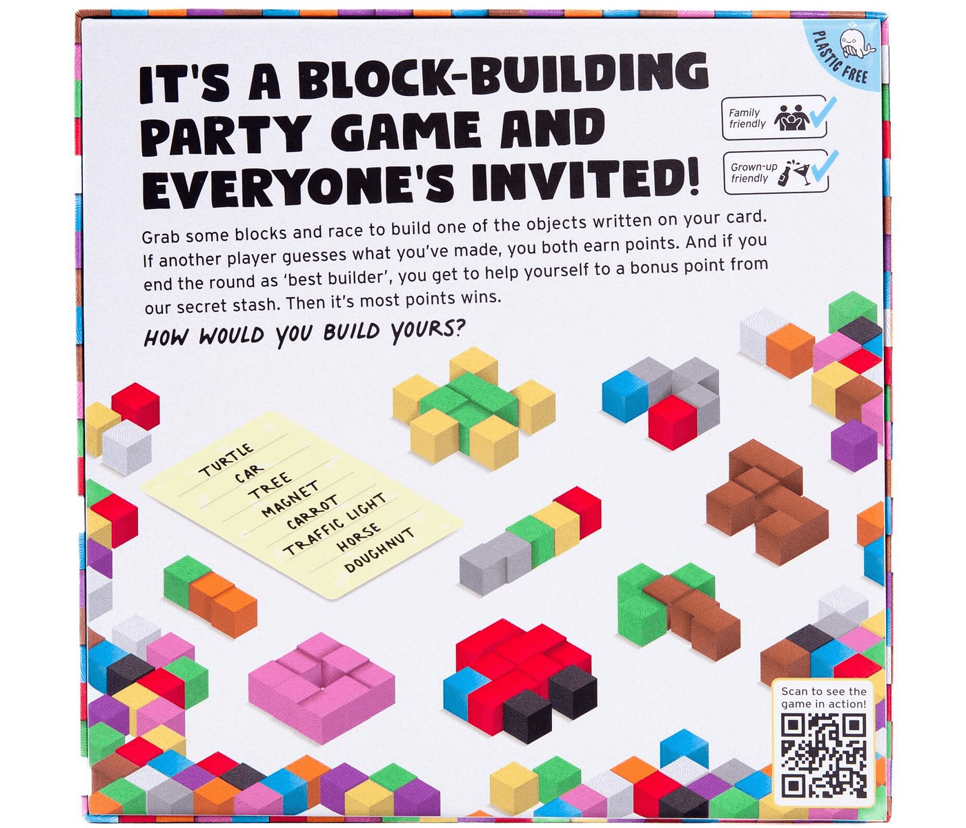 Get others guess objects you build using vibrant wood cubes.