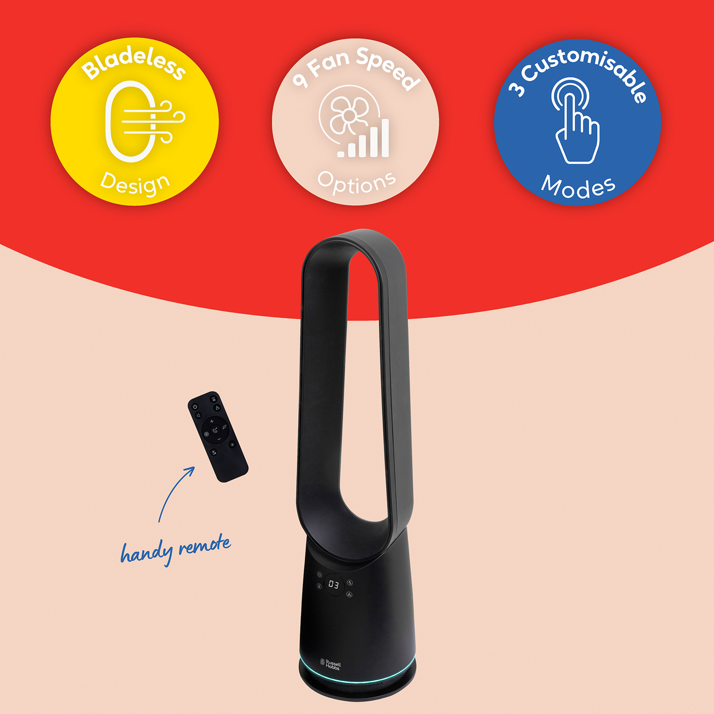 Russel Hobbs Bladeless Fan And Heater - Black