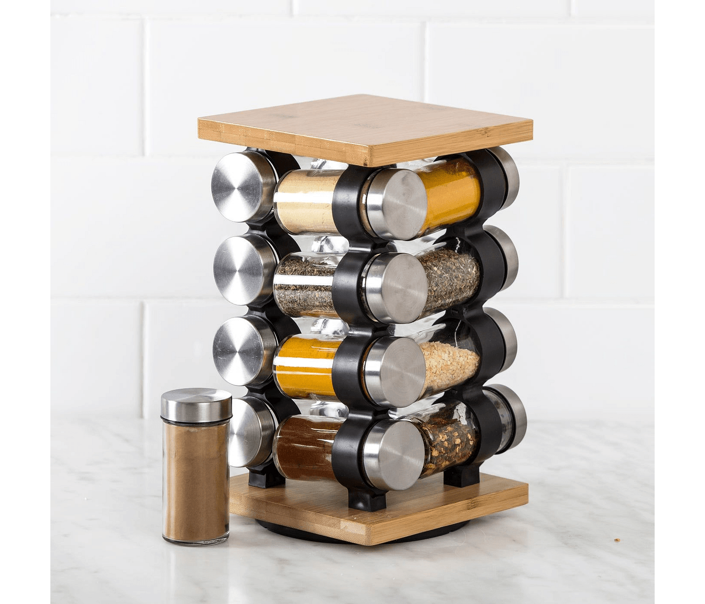 • Easy access to spices for quick meal prep