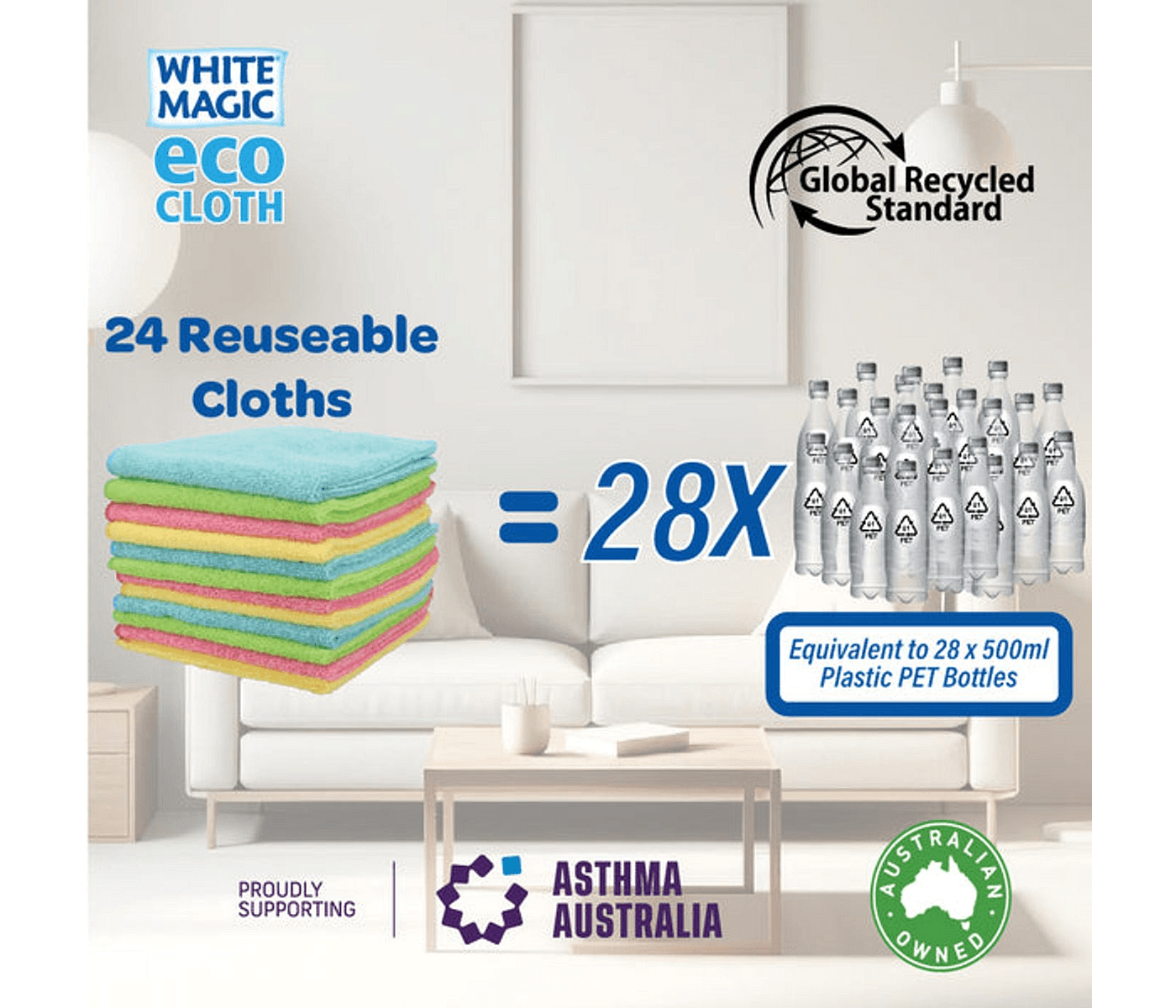 EcoCloth White Magic Eco Cloth Recycled General Purpose Microfibre Cleaning Cloth 24pack is a game-changer for Australian households looking to simplify their cleaning routine. This complete bundle provides an incredible solution for maintaining a spotless home while being environmentally friendly. Perfect for tackling spills, dust, and grime, these cloths make cleaning effortless, helping families spend less time on chores and more time enjoying their lives. With these versatile cloths, you can embrace a cleaner, greener lifestyle.