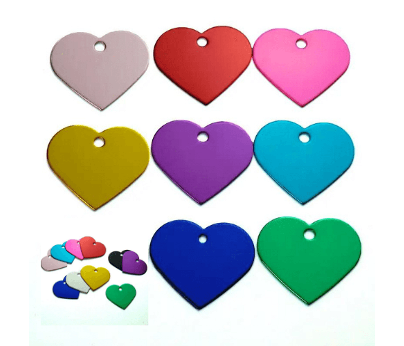 Assorted colours Dog Cat, Hello Coucou Aluminium Heart Tag. durable, blank pet luggage ID charm. Personalize, protect, and cherish forever.