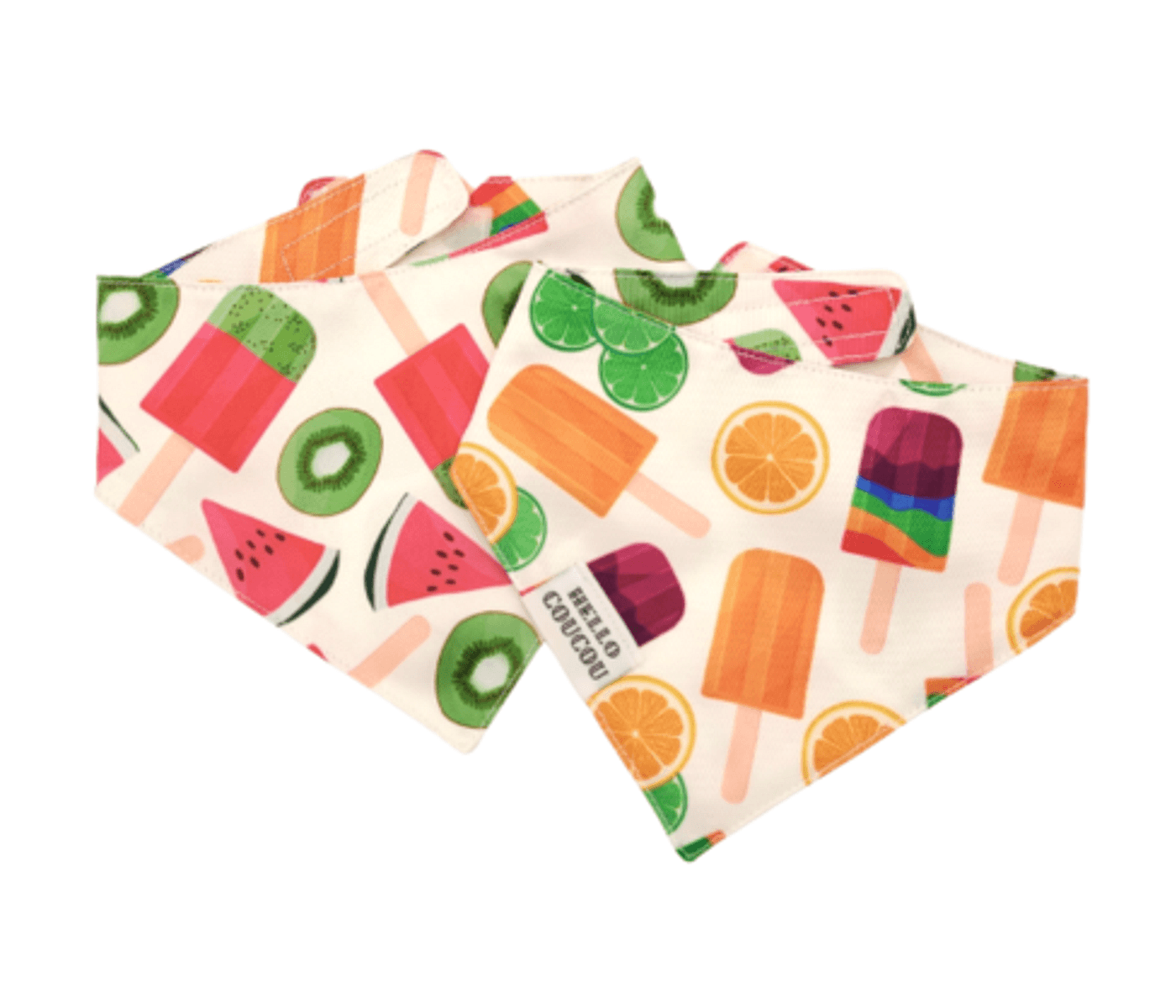 Double the fun with Hello Coucou WATERMELON SUGAR reversible dog cat bandana. vibrant, comfortable, stylish pet accessory for joyful adventures.