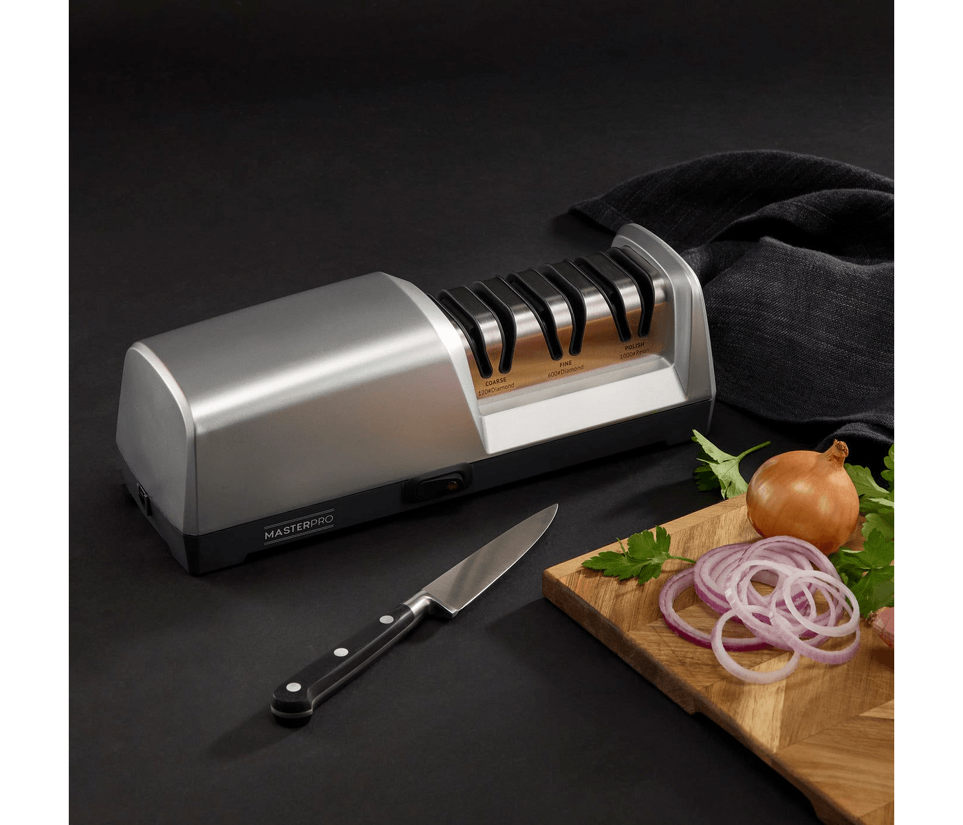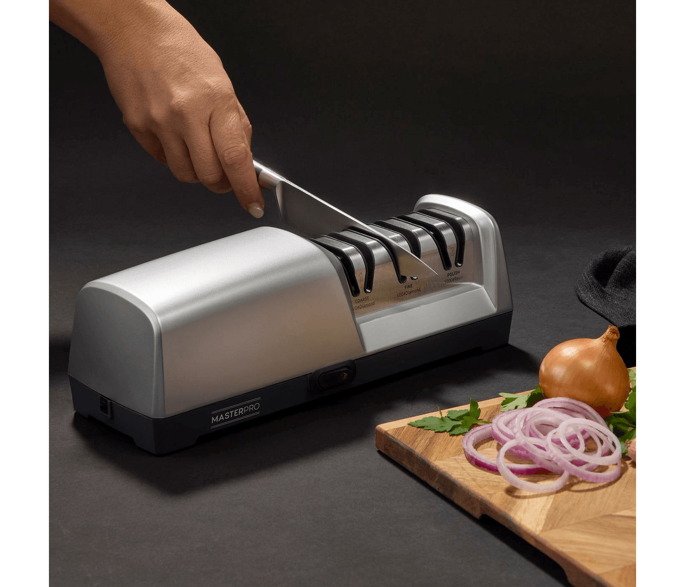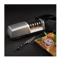 MasterPro 3 Stage Precision Electric Knife Sharpener Silver is a game-changer for Australian kitchens. This incredible sharpener ensures your kitchen knives are always razor-sharp, enhancing your cooking experience and making meal preparation effortless. With its sleek design, it not only adds style to your kitchen but also provides unmatched efficiency, allowing you to enjoy the art of cooking with precision cutting every time.