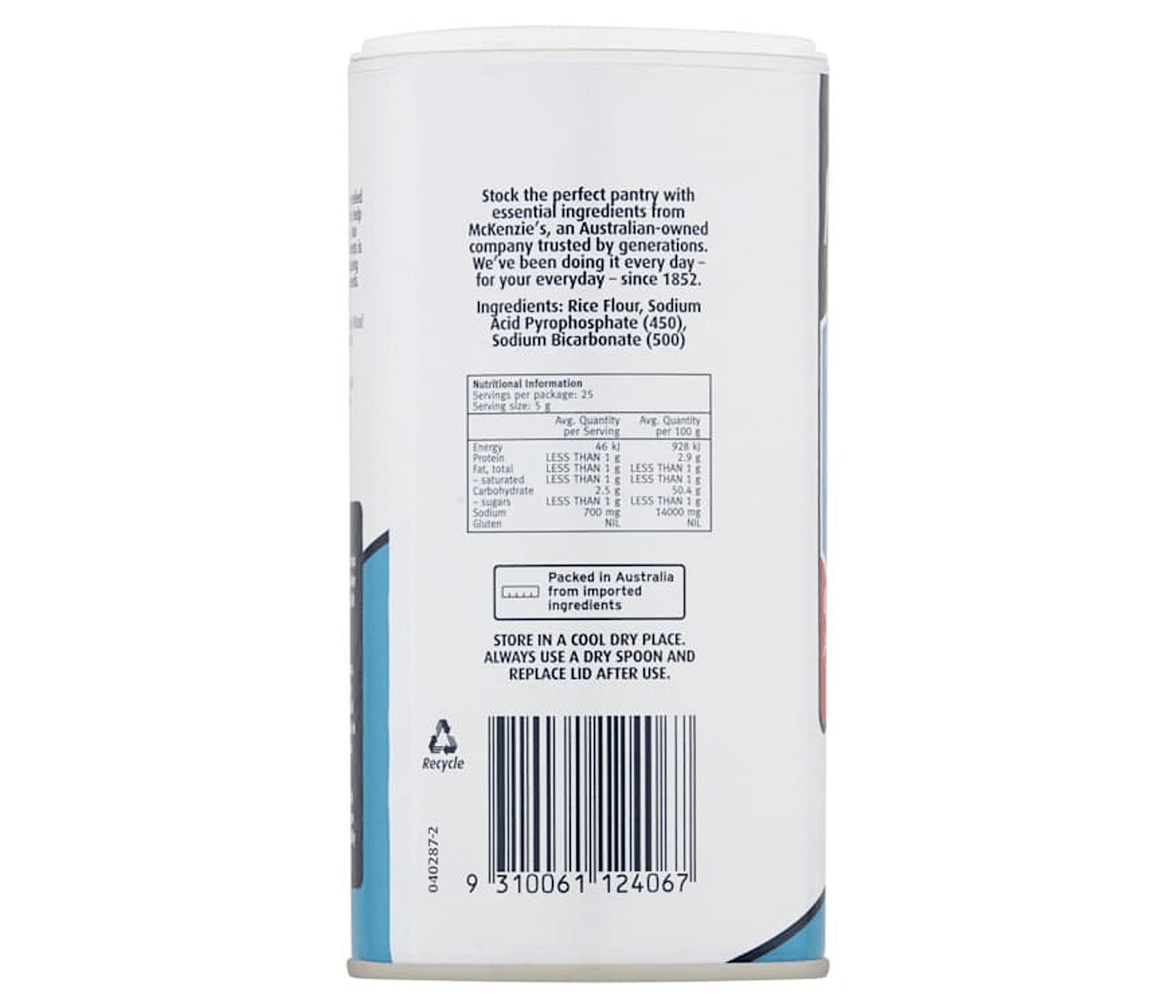 McKenzie's Baking Powder 300 Gram is a must-have in every Australian kitchen, making baking easier and more enjoyable for families. This premium baking essential ensures your cakes, muffins, and pastries rise perfectly, bringing joy to home-baked treats. With its reliable performance, it transforms everyday ingredients into delightful creations, making it a game-changer for both novice and experienced bakers. Enjoy the convenience of this baking powder as you whip up delicious goodies for loved ones or special occasions.