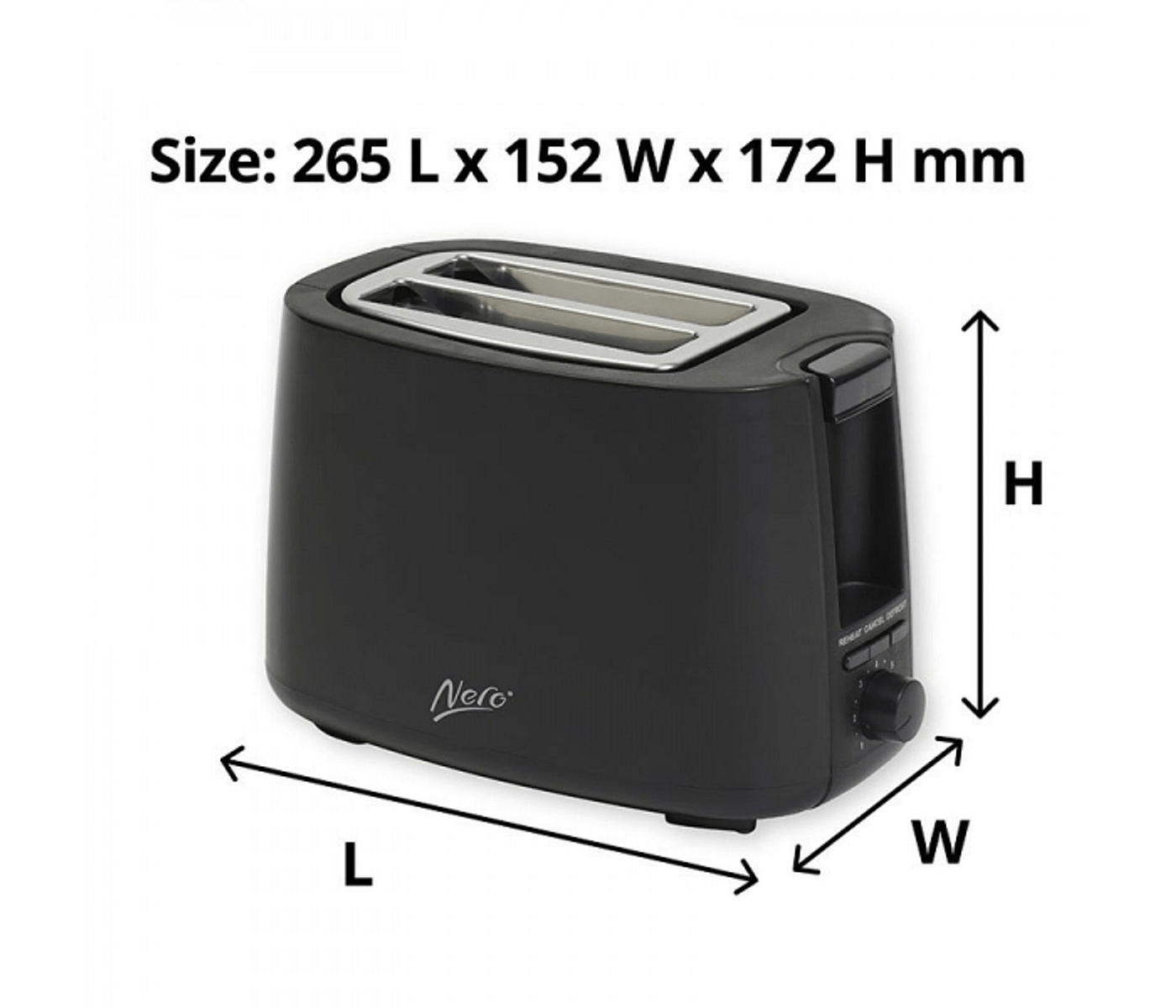 Nero 2 Slice Black Toaster: Sleek, compact design delivers warm, perfect toast for blissful breakfast experiences at home.