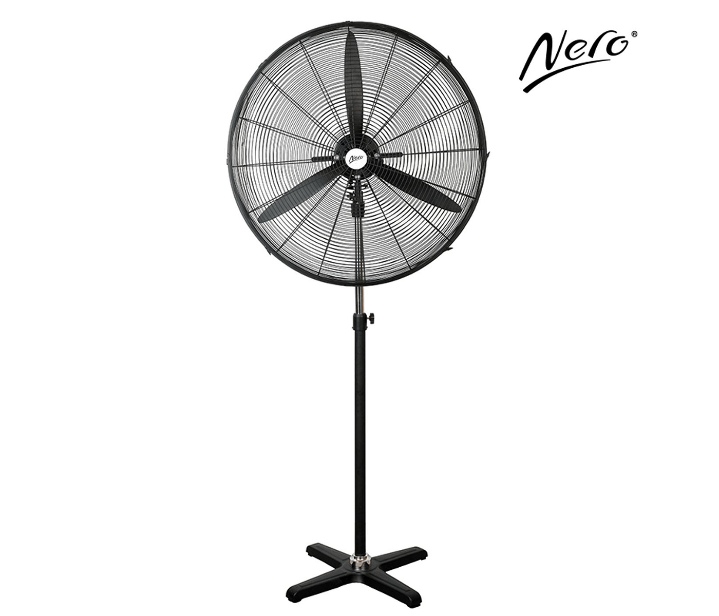 Nero Black Industrial Pedestal Fan, 75cm, fuses chic design and powerful airflow, delivering unparalleled comfort in style.