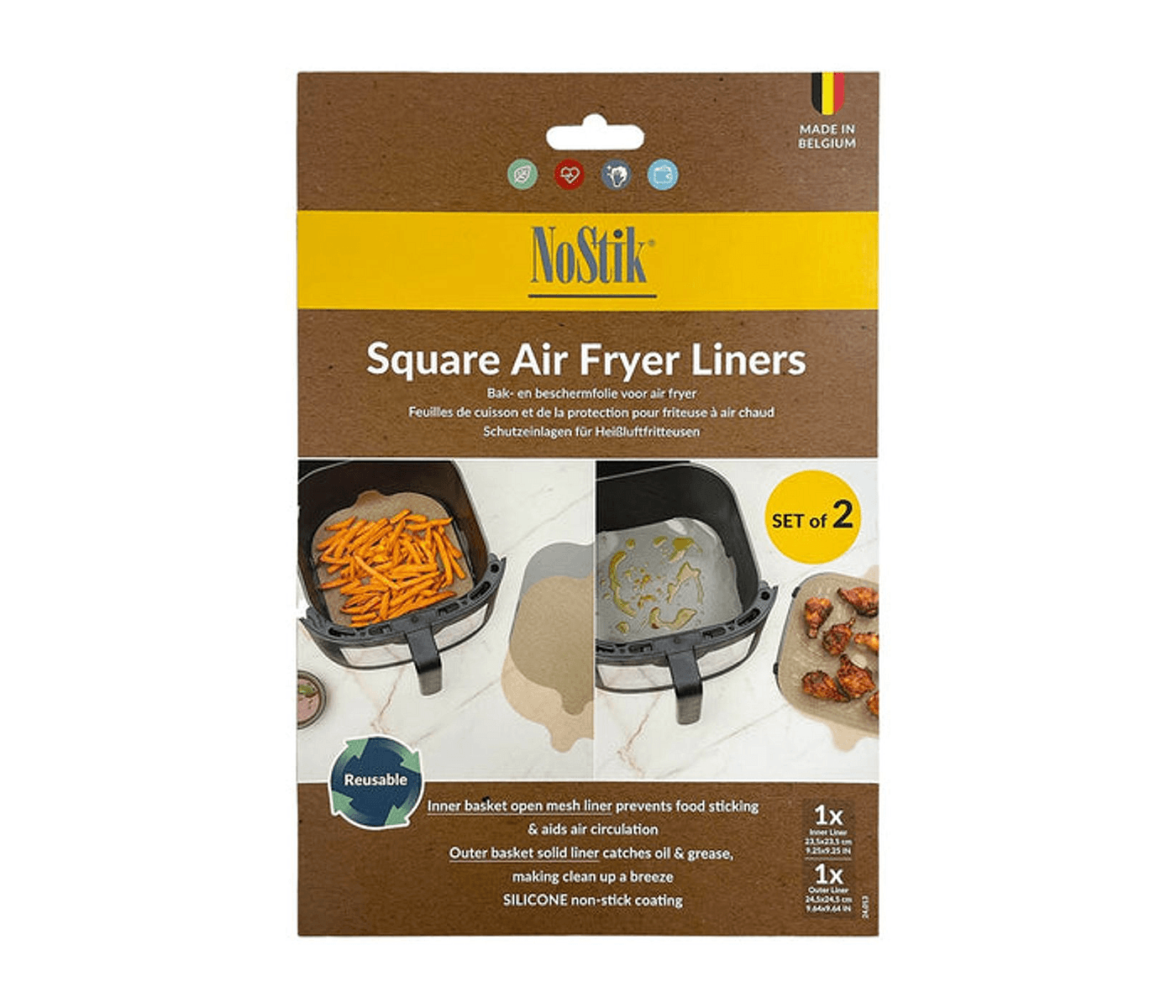 NoStik Silicone Fibreglass Square Air Fryer Liner Set of 2 is the ultimate kitchen companion for busy Australian families. These reusable liners make clean-up a breeze, allowing you to enjoy your favourite fried foods without the mess. Perfect for everyday cooking, they enhance your air frying experience and help you achieve healthier meals while saving time and effort. Say goodbye to frustrating scrubbing and hello to effortless cooking with these incredible liners that fit perfectly in your air fryer.