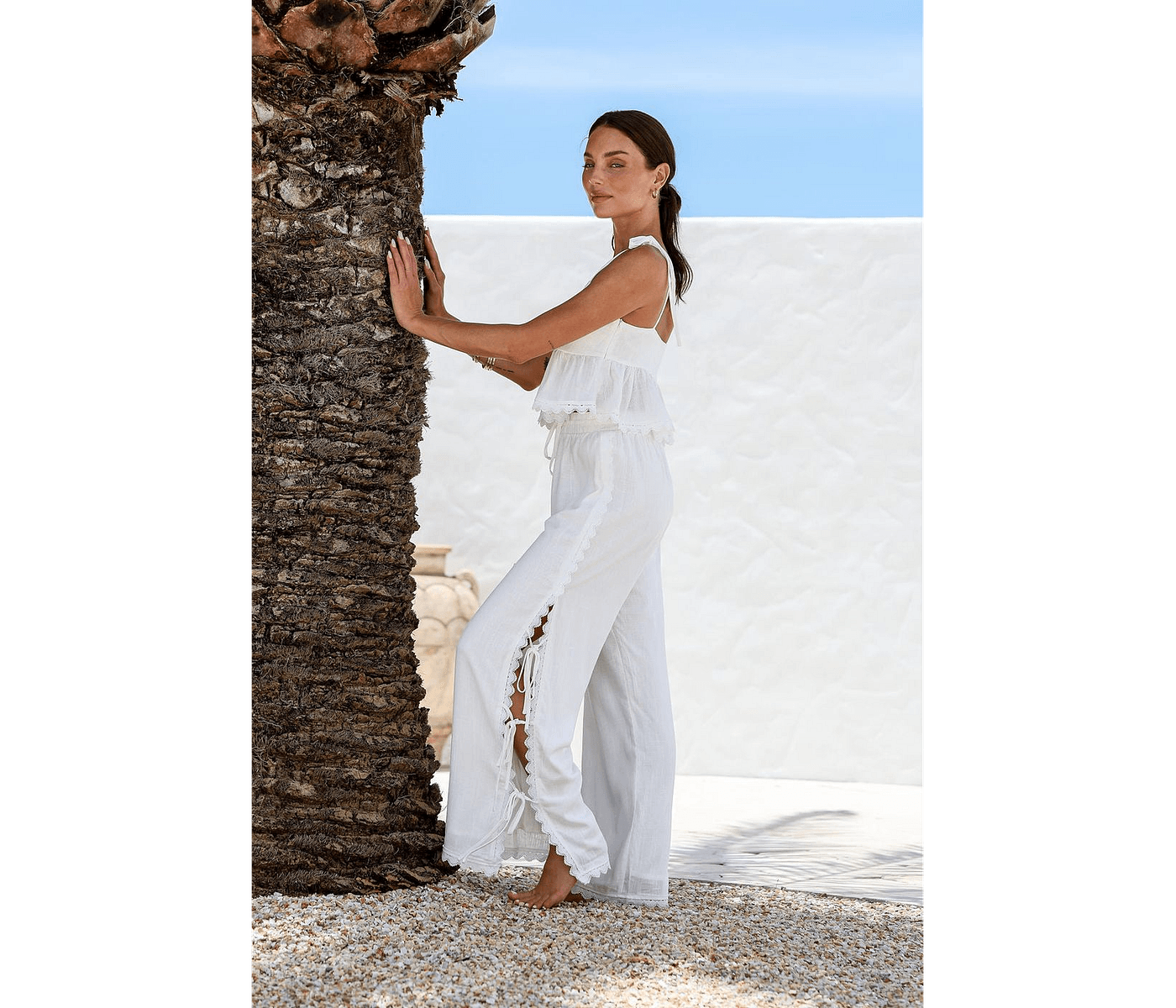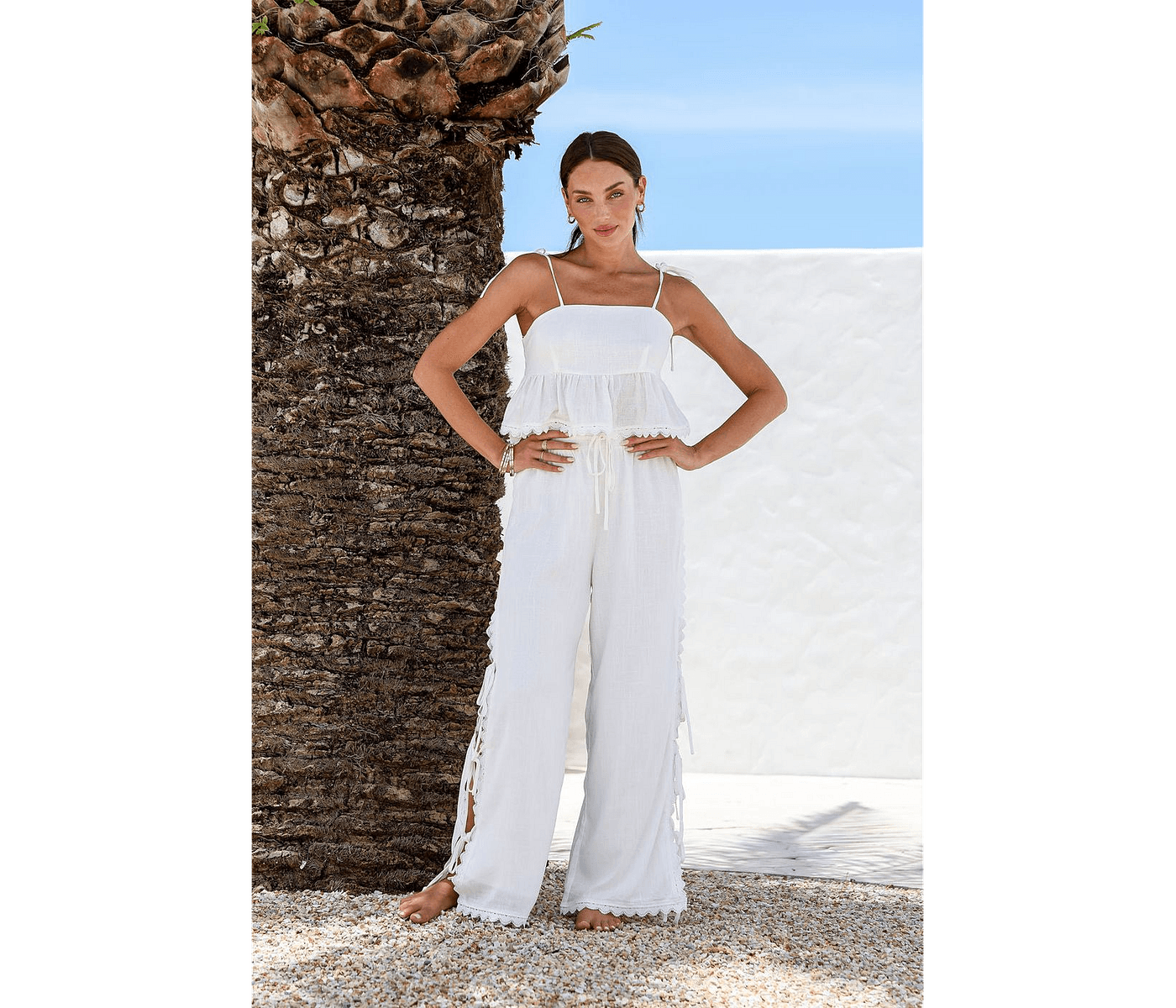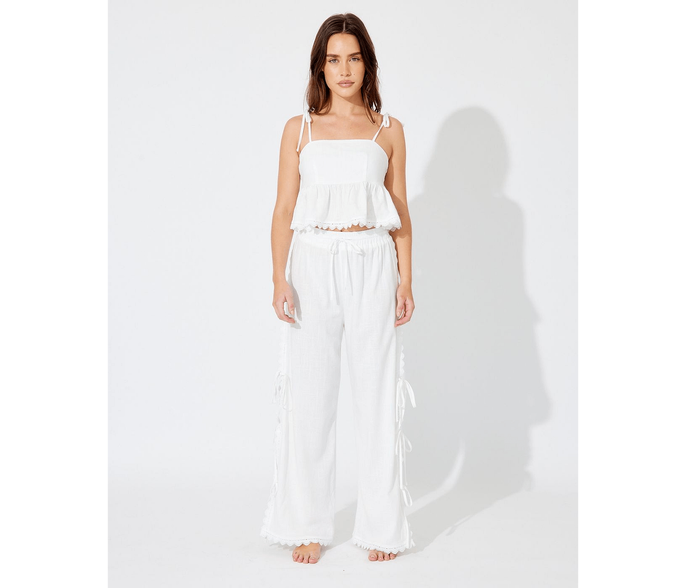 VENICE SIDE SPLIT PANT is the ultimate addition to your wardrobe, offering a chic and airy feel perfect for Australian summers. With its stunning Shell Scallop trim and functional side ties, this pant not only elevates your style but also ensures comfort throughout the day. Ideal for casual outings or family gatherings, it simplifies your outfit choices and enhances your everyday look, making it a must-have for modern Aussie lifestyles.