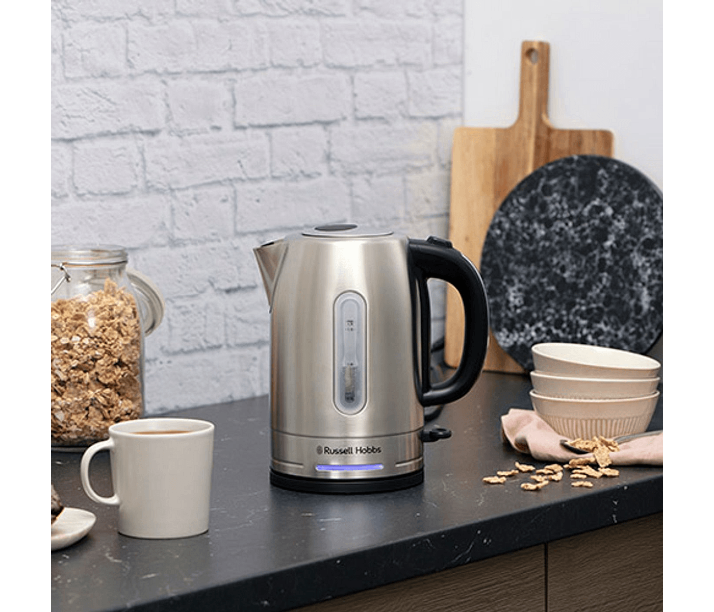 Russel Hobbs Quiet Kettle bundle brings peace to your mornings and nights, making it a game-changer for Australian homes. With its innovative Quiet Boil Technology, this kettle allows you to enjoy your tea or coffee without waking the whole household. Its stylish brushed stainless steel design and blue internal illumination add a touch of elegance to your kitchen while ensuring you have an easy-to-use appliance that enhances your daily routine.
