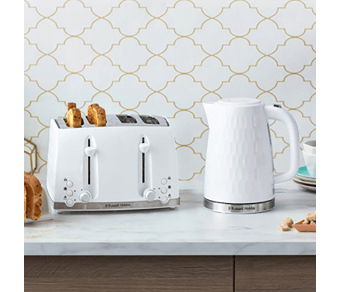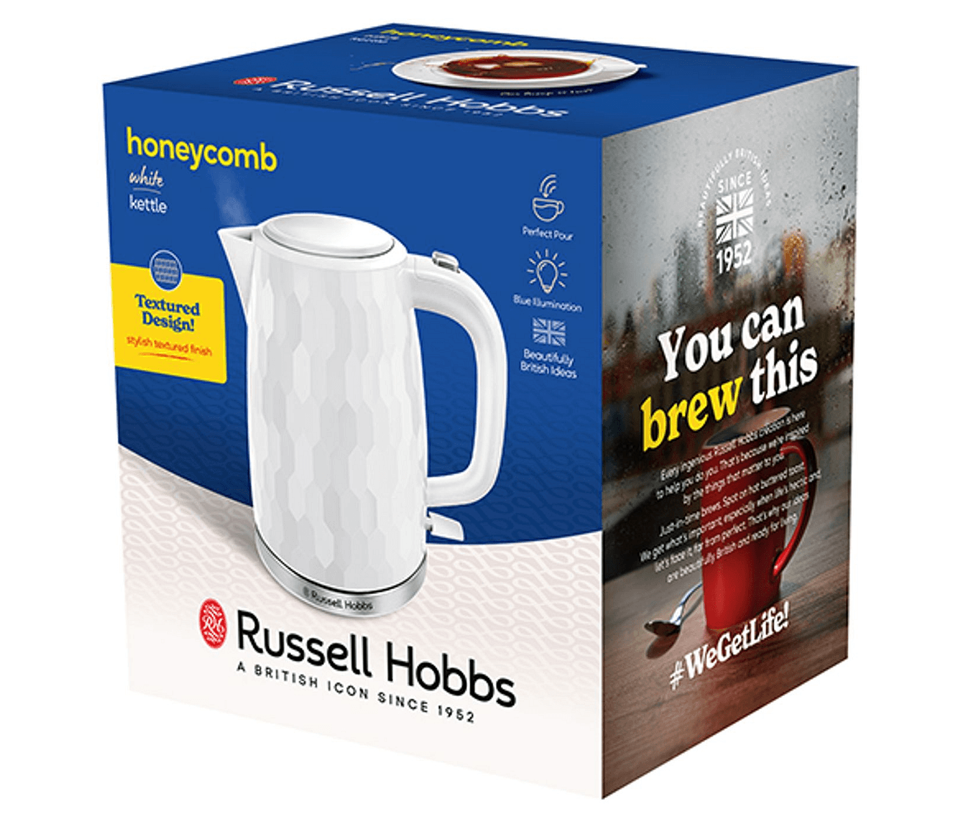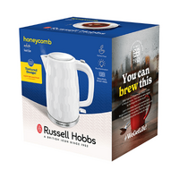 Russel Hobbs Honeycomb Kettle White is the ultimate kitchen companion for tea lovers in Australian homes. With its elegant honeycomb-inspired design, this quick-boiling kettle not only enhances your kitchen aesthetics but also ensures a perfect cup of tea in just 43 seconds. It's a stylish statement piece that combines premium quality with affordability, making your daily tea rituals both delightful and efficient.