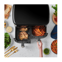 9L Russel Hobbs Satisfry Dual Basket Air Fryer is the ultimate kitchen upgrade for Australian families seeking healthier meal options. This incredible bundle allows you to cook crispy and delicious meals effortlessly, making it ideal for busy weeknights or weekend get-togethers. With simultaneous cooking capabilities, you can prepare multiple dishes at once, saving you time and energy in your daily cooking routine. Experience the joy of healthy eating without sacrificing taste, right in your own home.