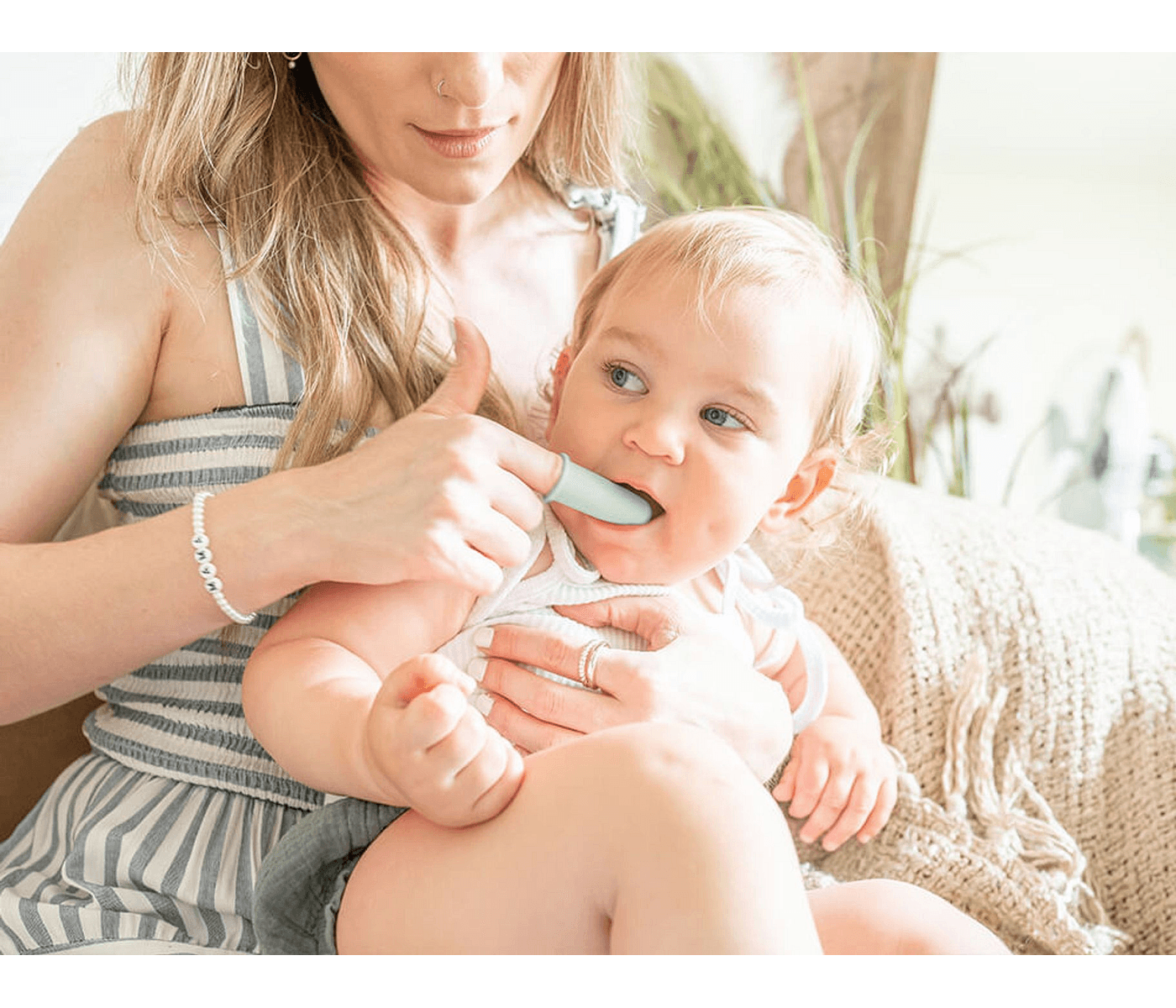 Home0-3 Months Collection Baby: Gently care for newborn gums with our sage silicone finger toothbrush & hygienic case.