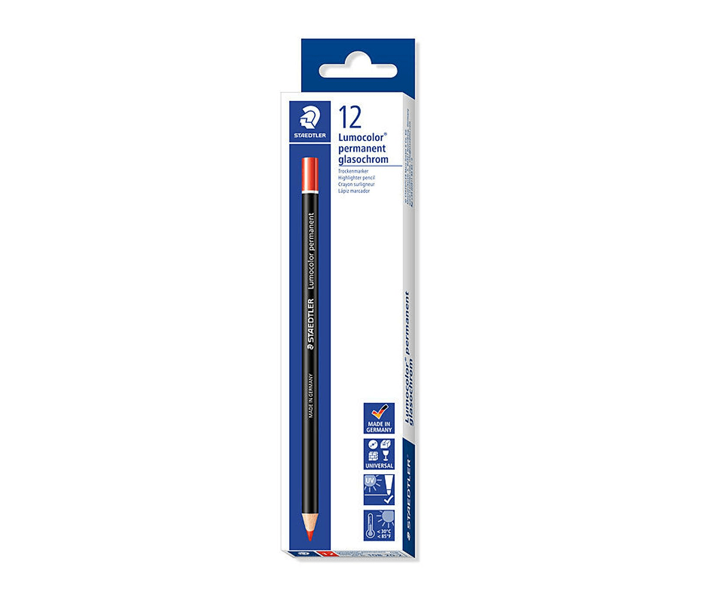 Staedtler Lumocolor permanent glasochrom 108 20 Waterproof Dry marker - Box of 12 - Red is the ultimate solution for creative professionals in Australia. These permanent markers deliver bold, waterproof red precision on various surfaces like glass, metal, and wood, making them perfect for presentations, art projects, or DIY tasks. With their durable and lightfast quality, they ensure your work stands out while bringing incredible value with a complete box of 12, perfect for any creative endeavour.