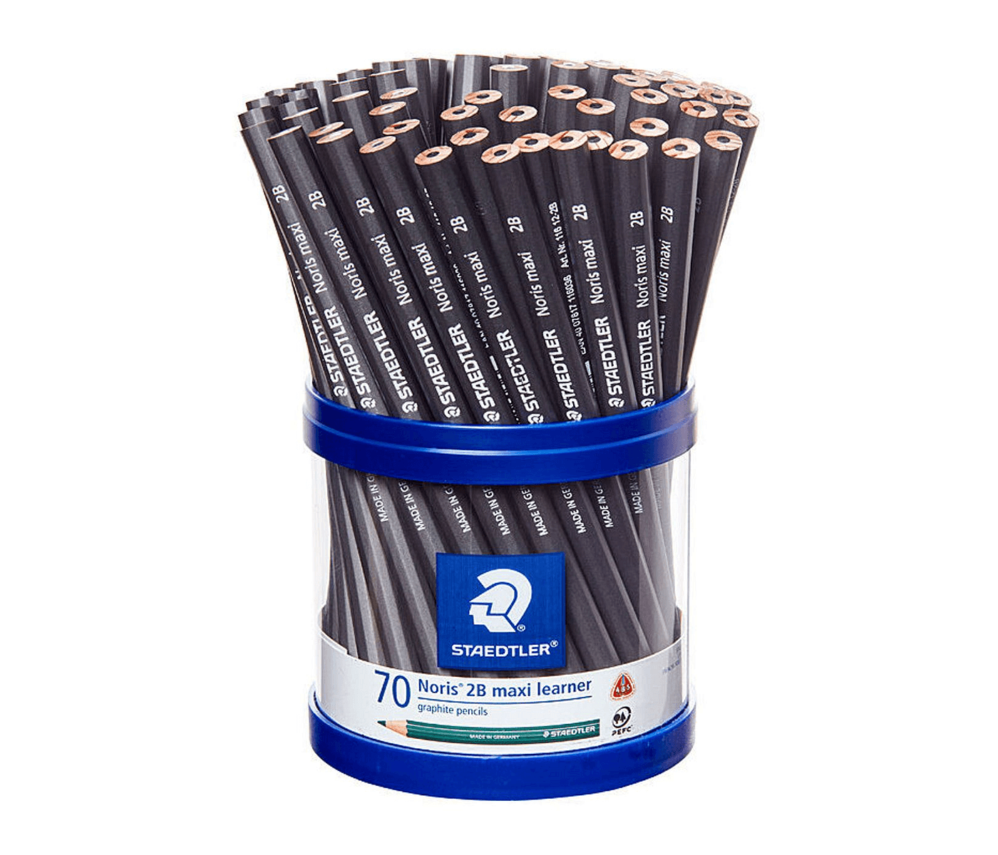 Staedtler Noris Maxi Learner Graphite 2B Pencil - Cup of 70 is the ultimate bundle for young learners in Australia. These jumbo-sized pencils are specifically designed for small hands, making writing a comfortable and enjoyable experience. Perfect for helping kids develop their writing skills confidently, this pack ensures they have the right tools to express their creativity and thoughts. With high break-resistance, parents can trust these pencils to withstand the rigours of daily use, creating an engaging environment for learning.