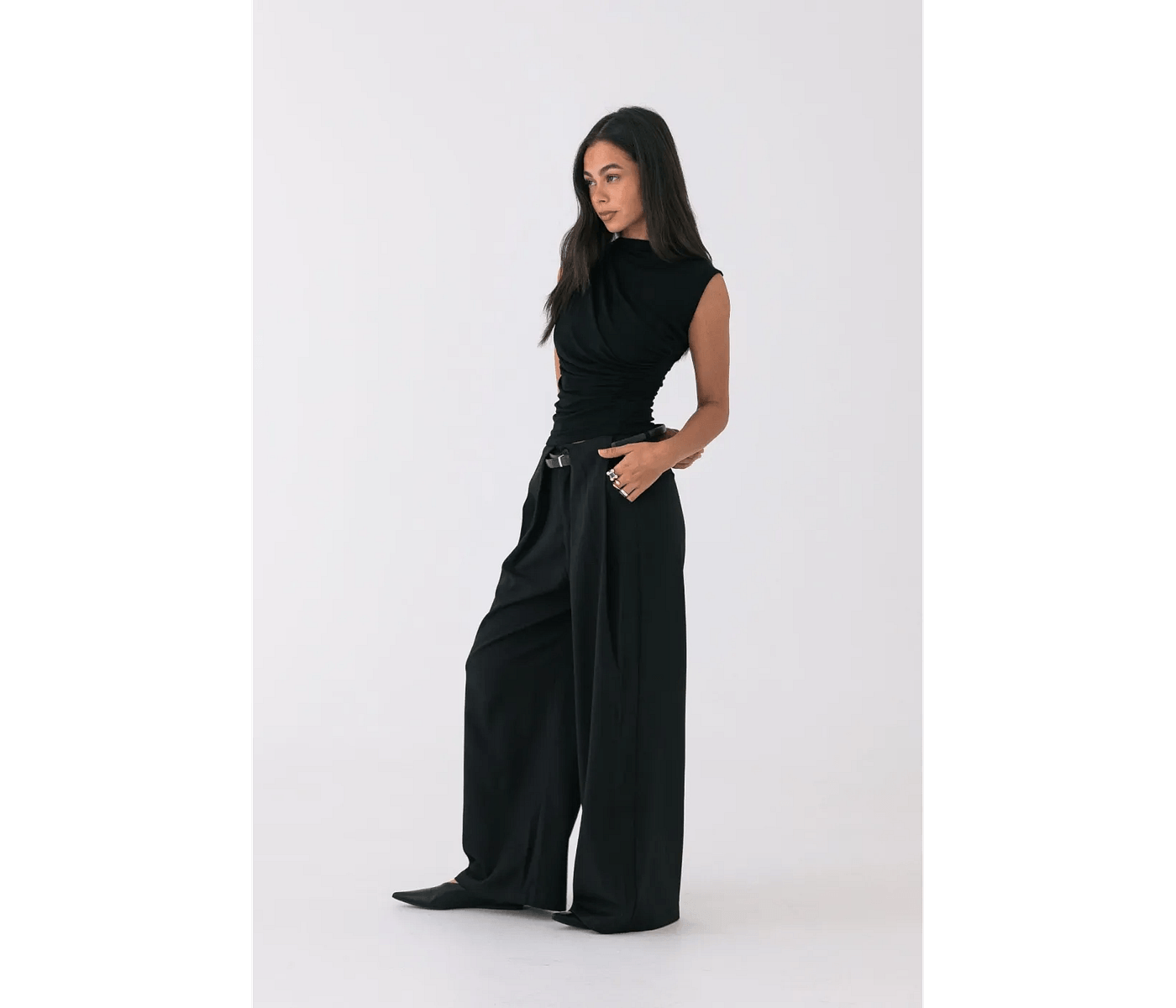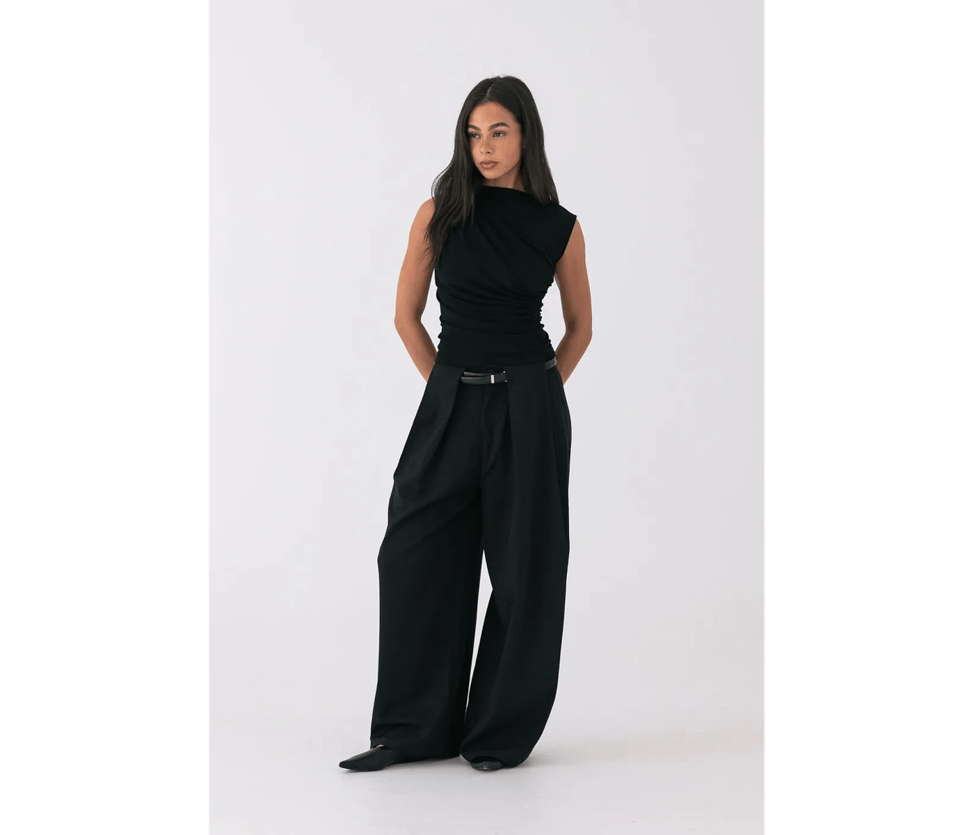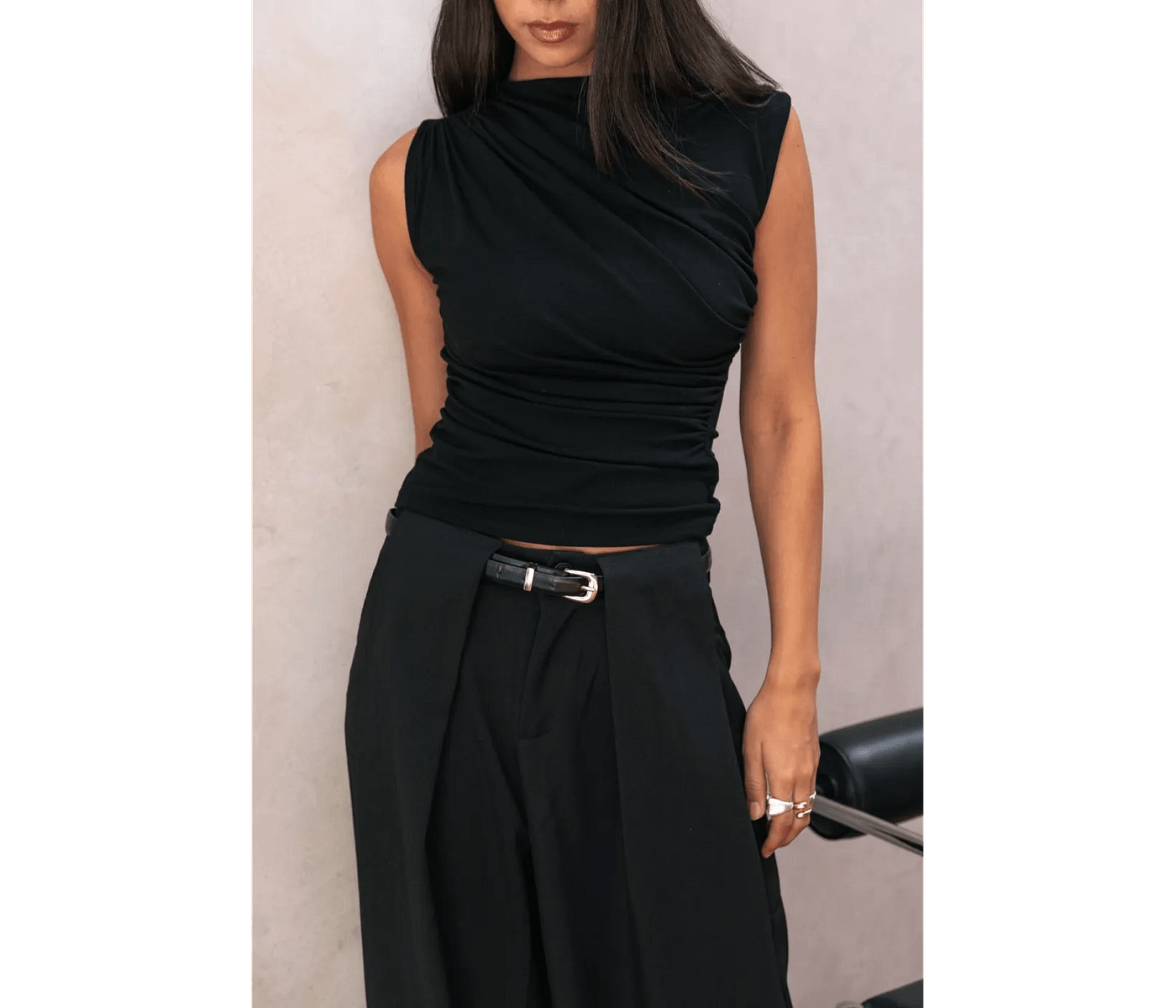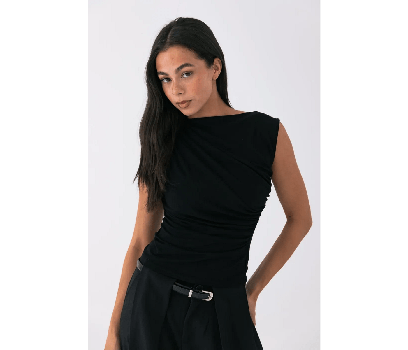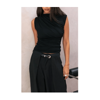 Style Addict Draped Asymmetric Tank - Black is the ultimate addition to any wardrobe, offering modern elegance that elevates everyday outfits. This stylish and versatile tank can be worn alone or layered, making it perfect for Australian lifestyles. Designed to flatter every silhouette, it adds a chic touch, whether you’re heading to brunch with friends or enjoying a casual day out. Experience the incredible comfort of high-quality fabric that feels as good as it looks.