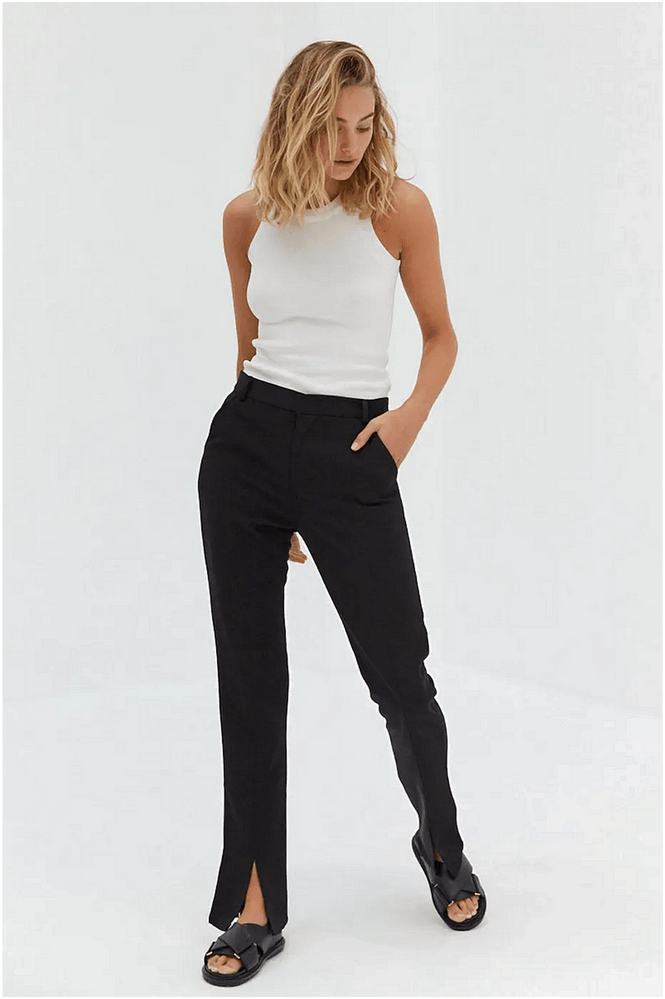 Style Addict Front Split Trouser Pants - Black are the ultimate addition to your wardrobe, offering a perfect blend of timeless elegance and modern flair. These trousers effortlessly elevate your style for any occasion, whether it's a casual outing or a formal event. Designed to elongate your silhouette, they provide comfort and sophistication, making them a must-have for every Australian woman looking to stand out with ease.