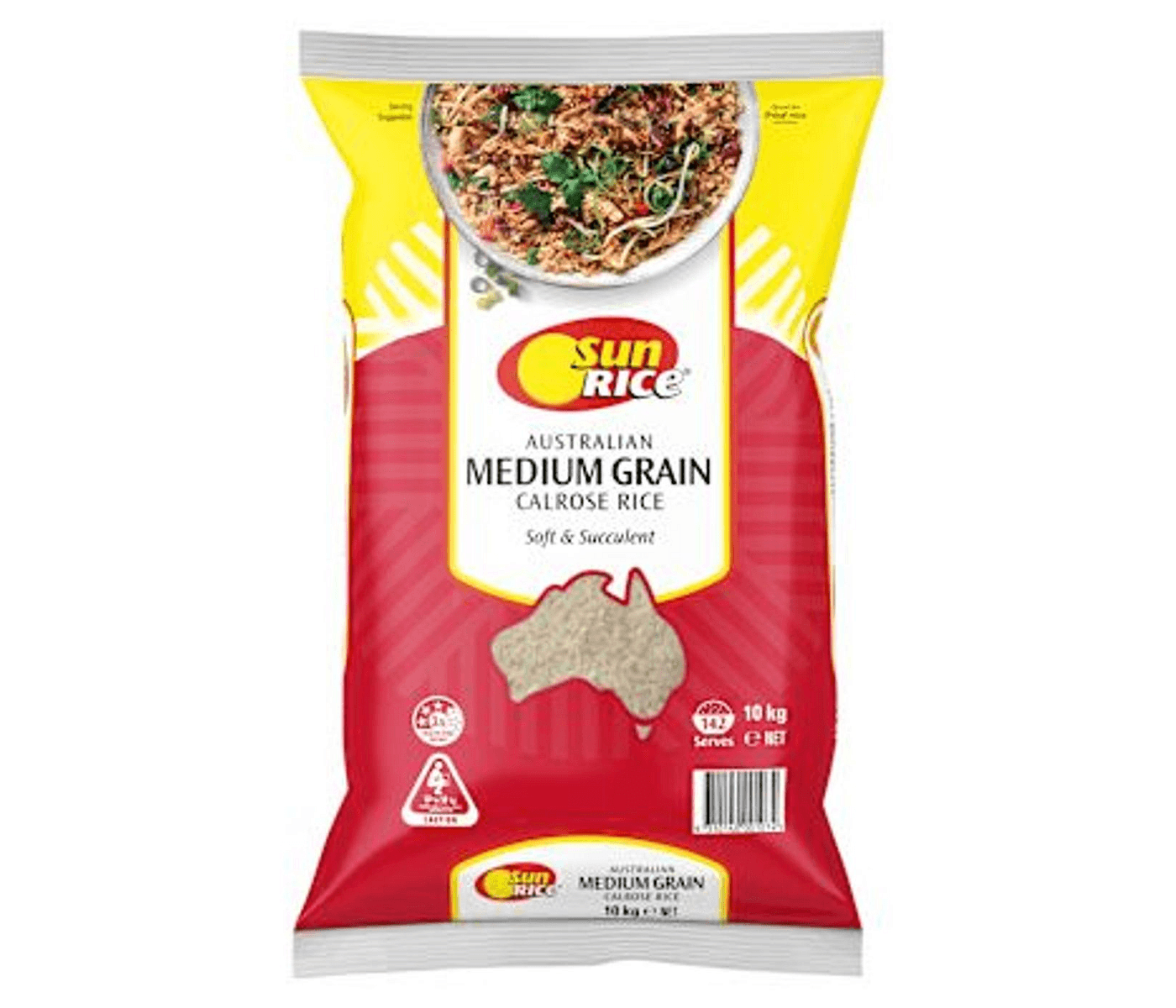 Sunrice Australian Medium Grain Calrose Rice 10kg delivers premium, fluffy texture. perfect for family meals, sushi, and authentic home-cooked comfort.