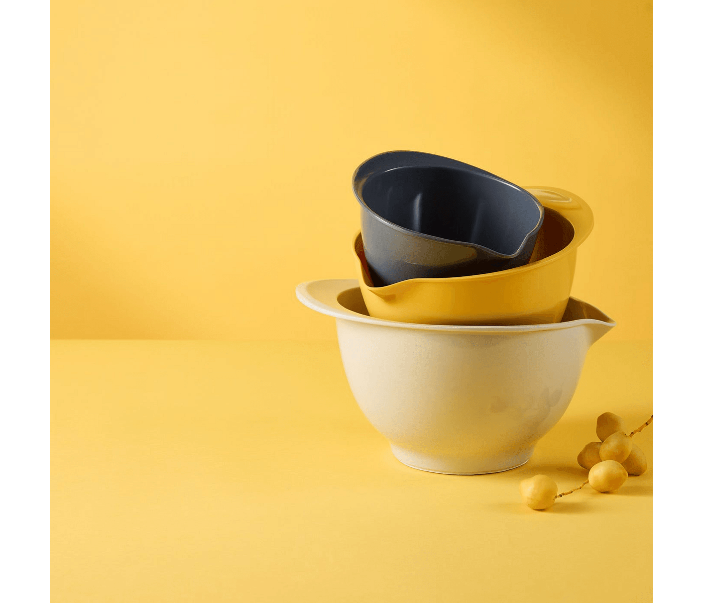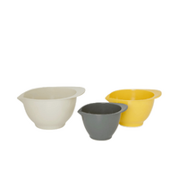 • Includes three durable, stackable bowls.