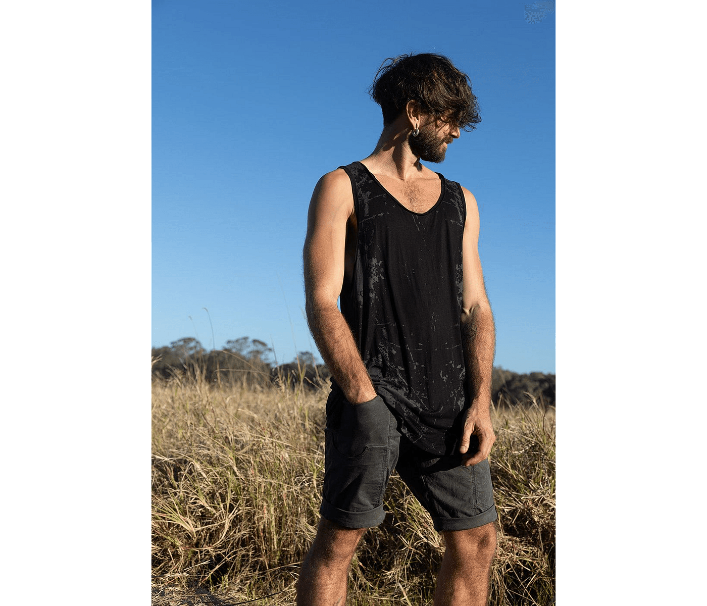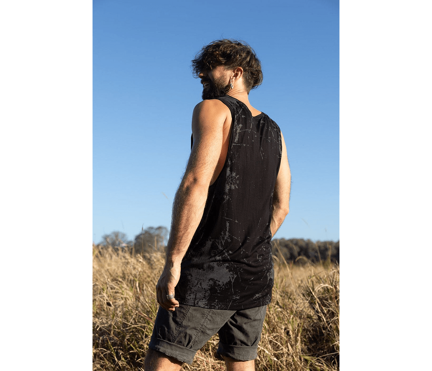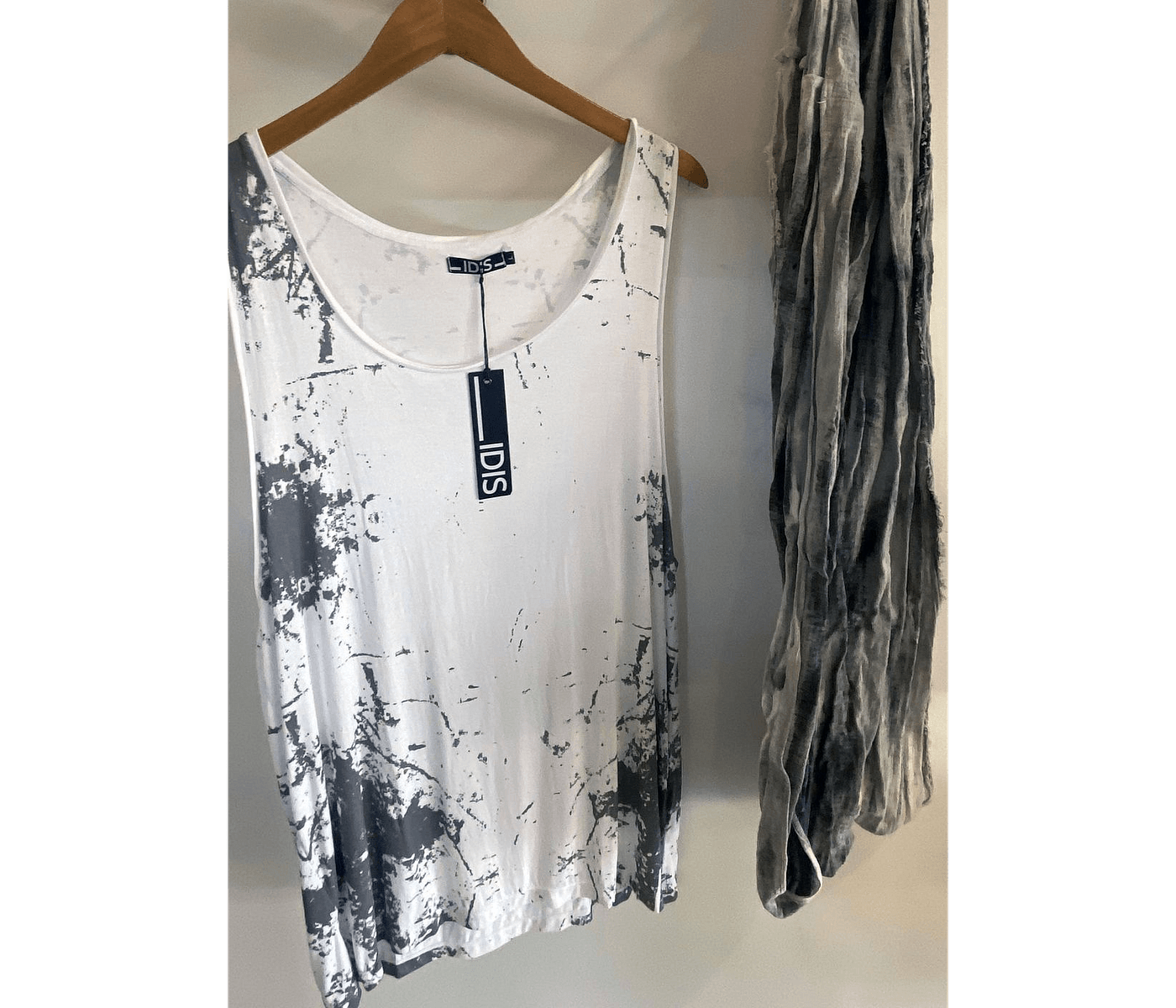 IDIS Textural Tank Made from lightweight rayon blends comfort and style. Black, screen-printed texture, perfect for modern, elevated wardrobes.