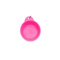 The 100 human food-grade silicone ZeeDog Go Bowl | Pink ensures safe, portable hydration or meals. collapsible, lightweight, dishwasher-safe convenience.